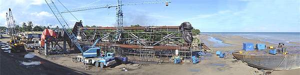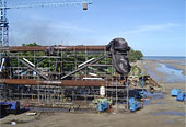 The Principal Yards of PT. H&H Utama International are situated on 60,000 square metres property in Batakan Kecil, Balikpapan, some three kilometers from the International airport. The main Steel Fabrication shop consists of some 2,500 square metres of fully covered and fully lighted space with 10 metre high working clearance and 5 overhead cranes each of 5,000 kilos capacity. The secondary Fabrication Shop completed in Year 2004 is 1,000 square metres of covered work space which handles special and aluminium welding and is equipped with 3 overhead cranes also with 5,000 kilos capacity. The fabrication process is supported by some 80 welding machines (Mig, Tig, submerged arc), 18 generators of various capacities, 20 compressors, 10 forklifts, 2 heavy duty plate rollers and 2 plasma profile cutting machines. The complex has an independent power station fully insulated which generates 1200 KVA. The Blast and Paint Shop is an enclosed facility. The office building is some 1,000 square metres floor space housing Management, Drafting, Engineering, Purchasing, Personnel and Accounting departments. The main Fully Enclosed Warehouse is approximately 1,500 square metres and contains racks and pallets sufficient to store all light portable machinery plus consumables and weather sensitive inventory. The Machine Shop measures some 1,500 square metres and is fitted with numerous lathes, drilling, boring and milling machines. This bank of machines is supplemented by a further group of bending, plate cutting, honing and grinding machines. Seafront Access. Directly across the road from the Principal Yards is a 13,000 square metres property which provides direct access to the bay for loading and unloading of fabricated units, general cargo and heavy equipment. There is a large open laydown or work area which runs right up to the piled sea wall. The major building in the yard is a modern two storey structure of approximately 2,500 square metres which houses the three H & H associate companies.” |