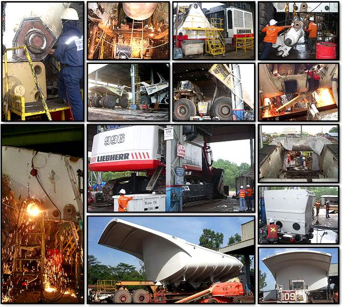 Liebherr – Chassis and Bucket RepairsSupply manpower, equipment and consumables for chassis and bucket upgrades and crack repairs for T282 trucks operating at KPC mine. These works started in early Year 2009 and are ongoing. Project managed completely at H&H Sangatta facility. |